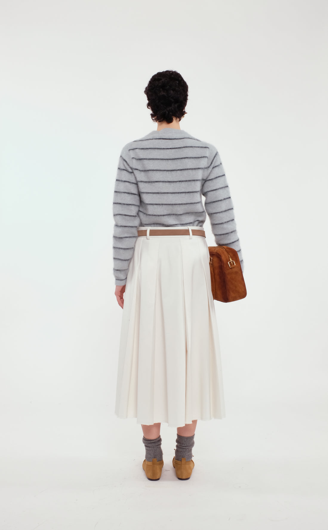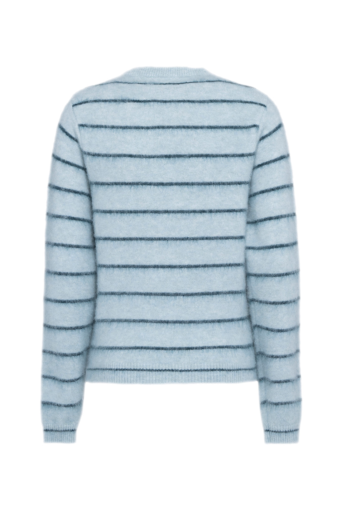 Light Blue Striped Long-Sleeve Sweater In Stretch Alpaca Wool