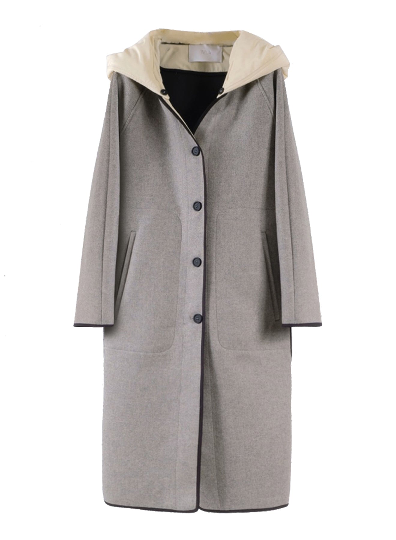 Grey Hooded Wool Raincoat